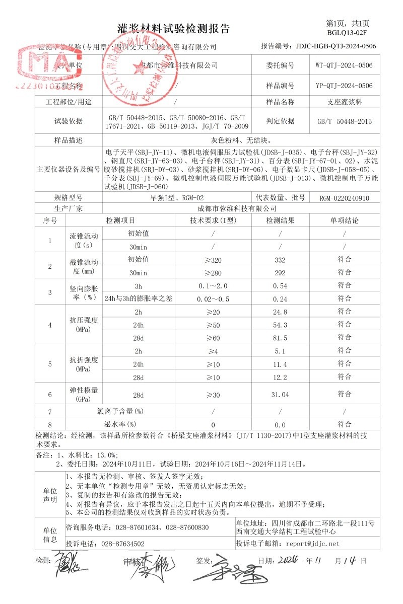 公司主营生产高强度聚合物砂浆,高强无收缩灌浆料,孔道压浆剂,高铁加固专用聚合物修补砂浆,桥隧专用电缆,自公司成立以来始终以满足客户的需求为焦点,可根据工程规范要求生产或提供来料加工等特殊服产品订制服务,为诸多行业用户提供了高质量的系列产品和优质服务,得到了用户的广泛认可。